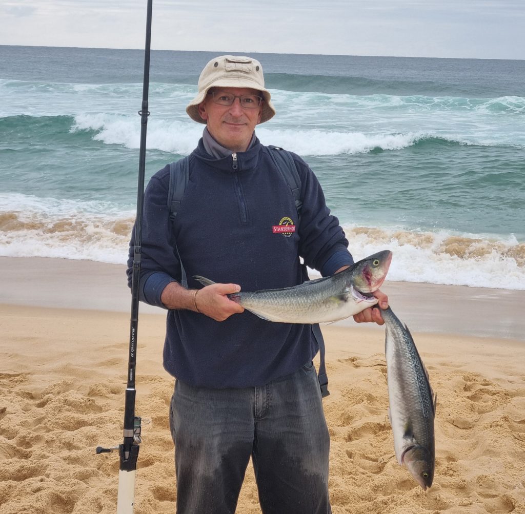 Peter, from Canberra, very happy with his catch of a pair of 60 centimetre Australian salmon he caught on Saturday morning on Tura Beach.